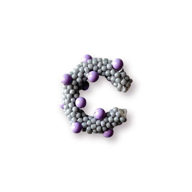 ビーズをひとつひとつ丁寧に編み上げたイヤーカフ カラフルな配色は、単独で身に着けても存在感があり、忙しい日にもさっと取り入れられるアイテム。 ピアスやイヤリングとの重ね着けもおすすめです。 カラーリングはその時々のインスピレーションで選んでいるため、同じデザインでの再入荷は未定となります。 芯にワイヤーを入れているため、フィット感の調整が可能です。 ※何度も調整を行うとワイヤーに負荷がかかり、破損につながることがあります。最初に一度フィットさせていただくことをおすすめします。 重さは約3g。 軽すぎて不安になることも、重すぎてストレスを感じることもない、程よい着け心地です。 金属部分が直接耳に触れない仕様のため、金属アレルギーの方にも安心してご使用いただけます。 サイズ・素材 重さ:約3g 素材:ビーズ、真鍮ワイヤー 円の内径:約1.3㎝