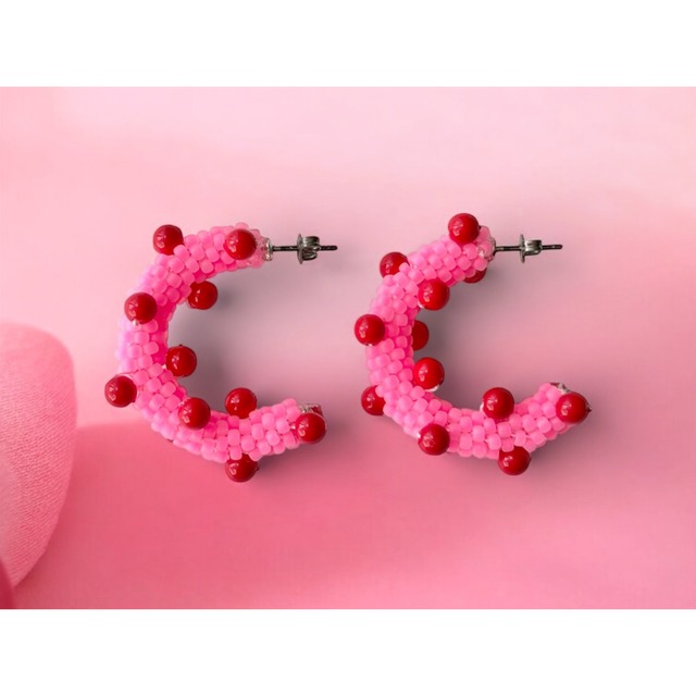 ビーズチューブのチャンキーフープ ピンク×レッド