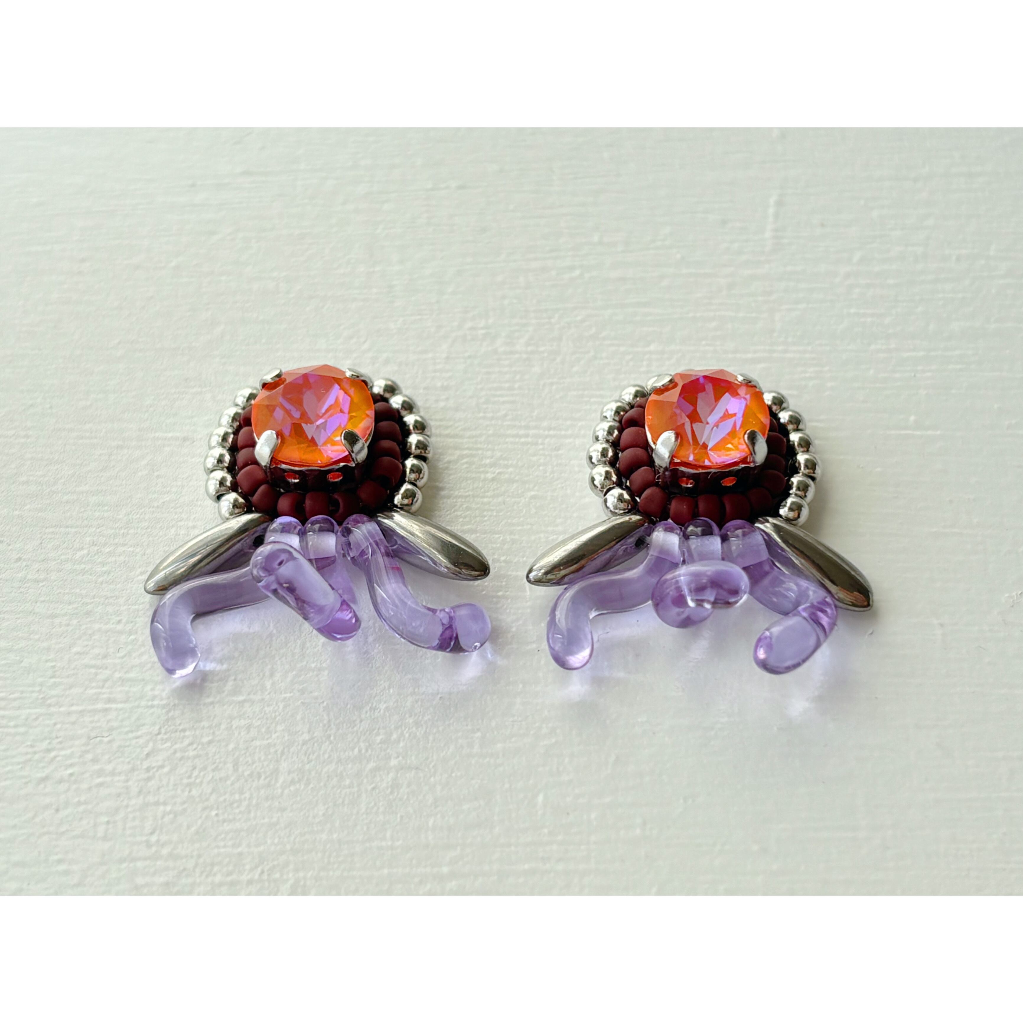 ガラスビーズ作家さんの手作りによる、貴重な“うにょうにょビーズ”を使用したイヤリングです。