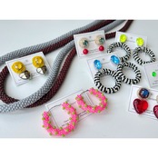 下部のサークルパーツは、白と黒のシードビーズをひと粒ずつ丁寧に編み込み都会的なデザインに。