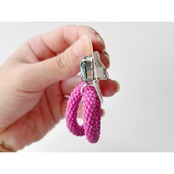 ピンクのサークル部分は、シードビーズをひと粒ひと粒丁寧に編み上げ立体感のある仕上がりにしています。