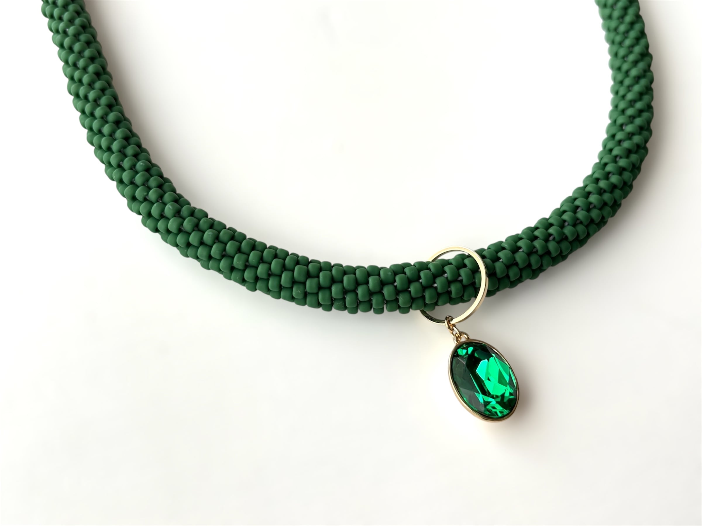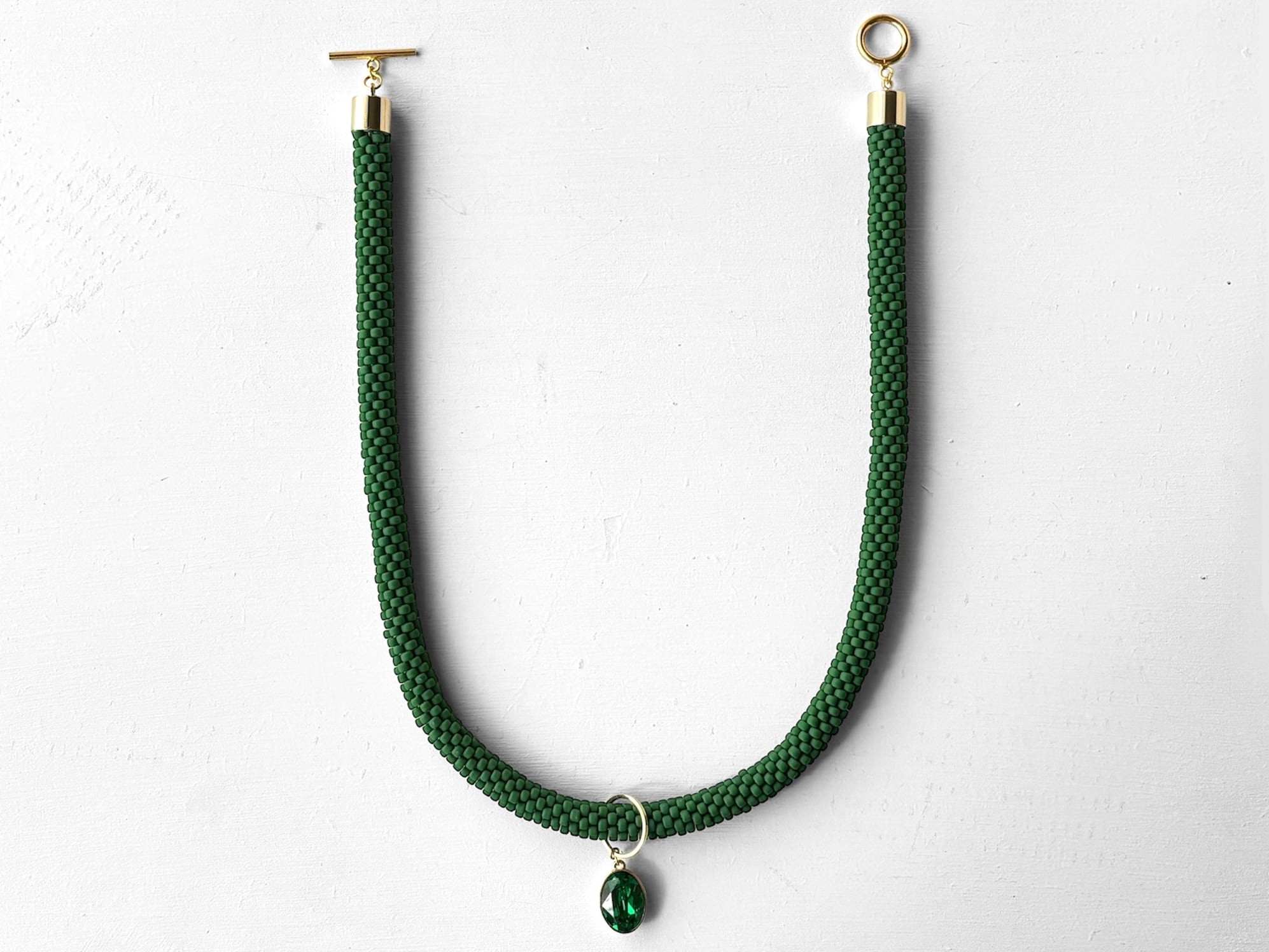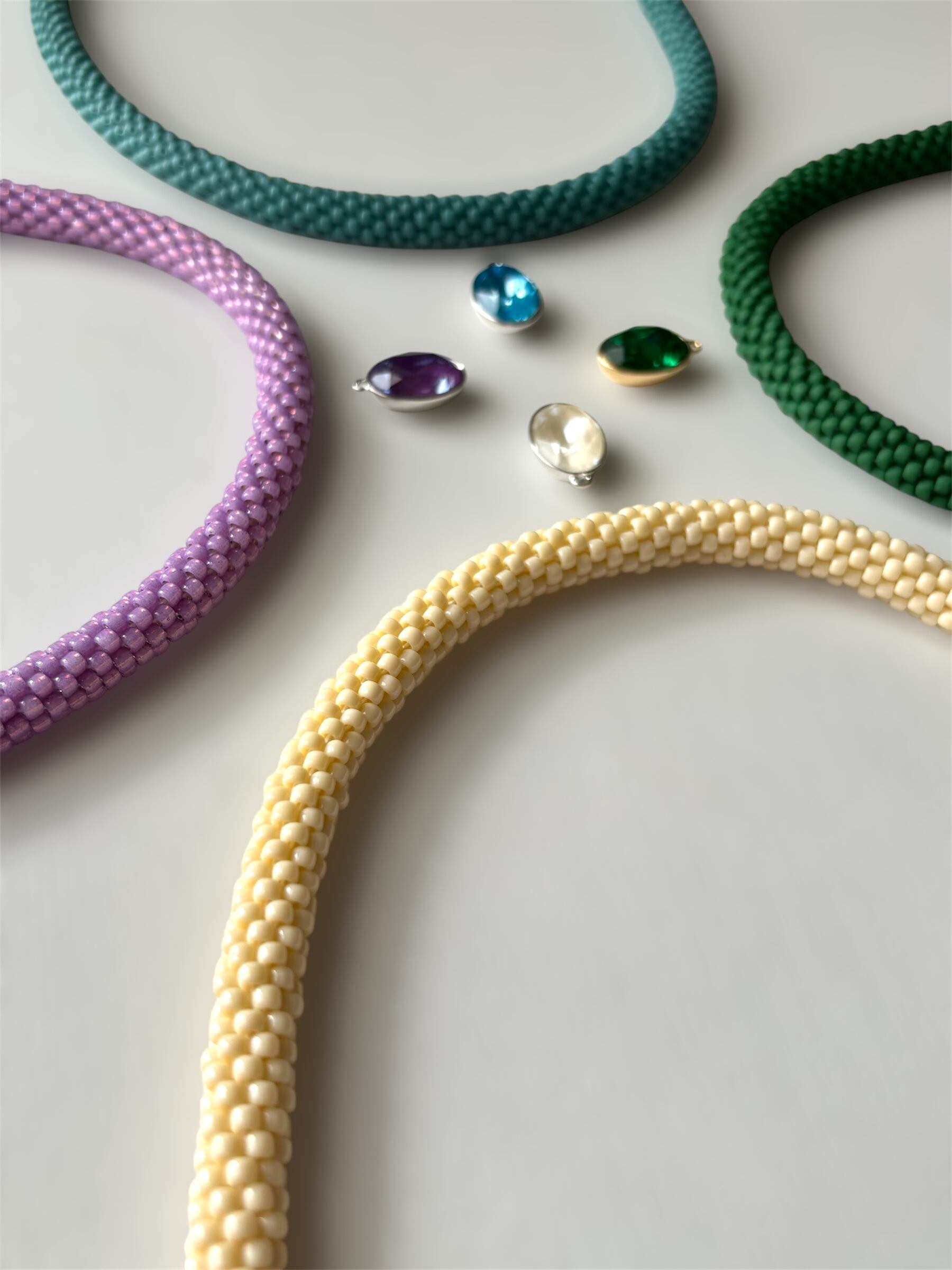 ビーズクロッシェの技法で編み上げた、立体感のある一本。