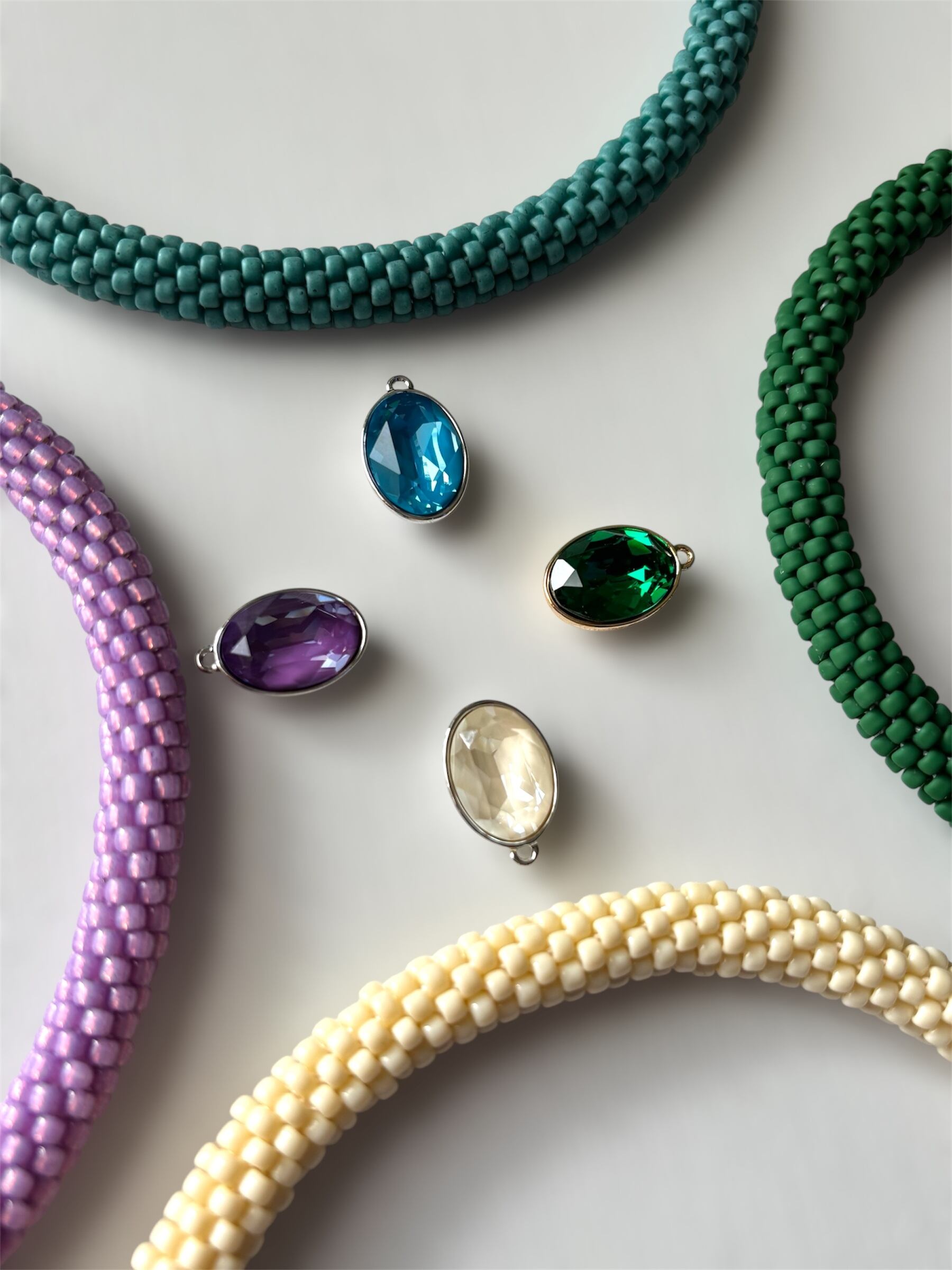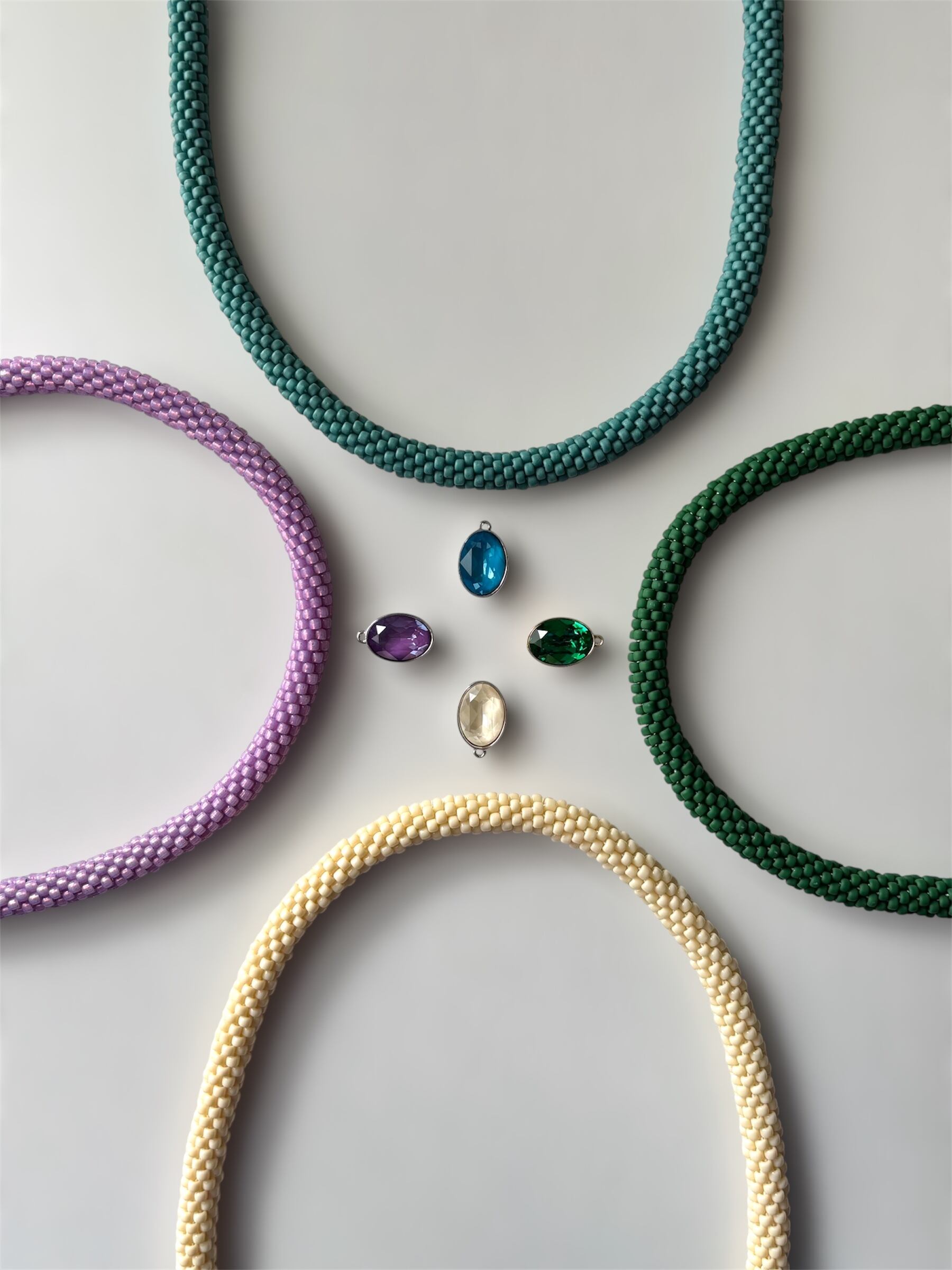 ビーズクロッシェの技法で編み上げた、立体感のある一本。