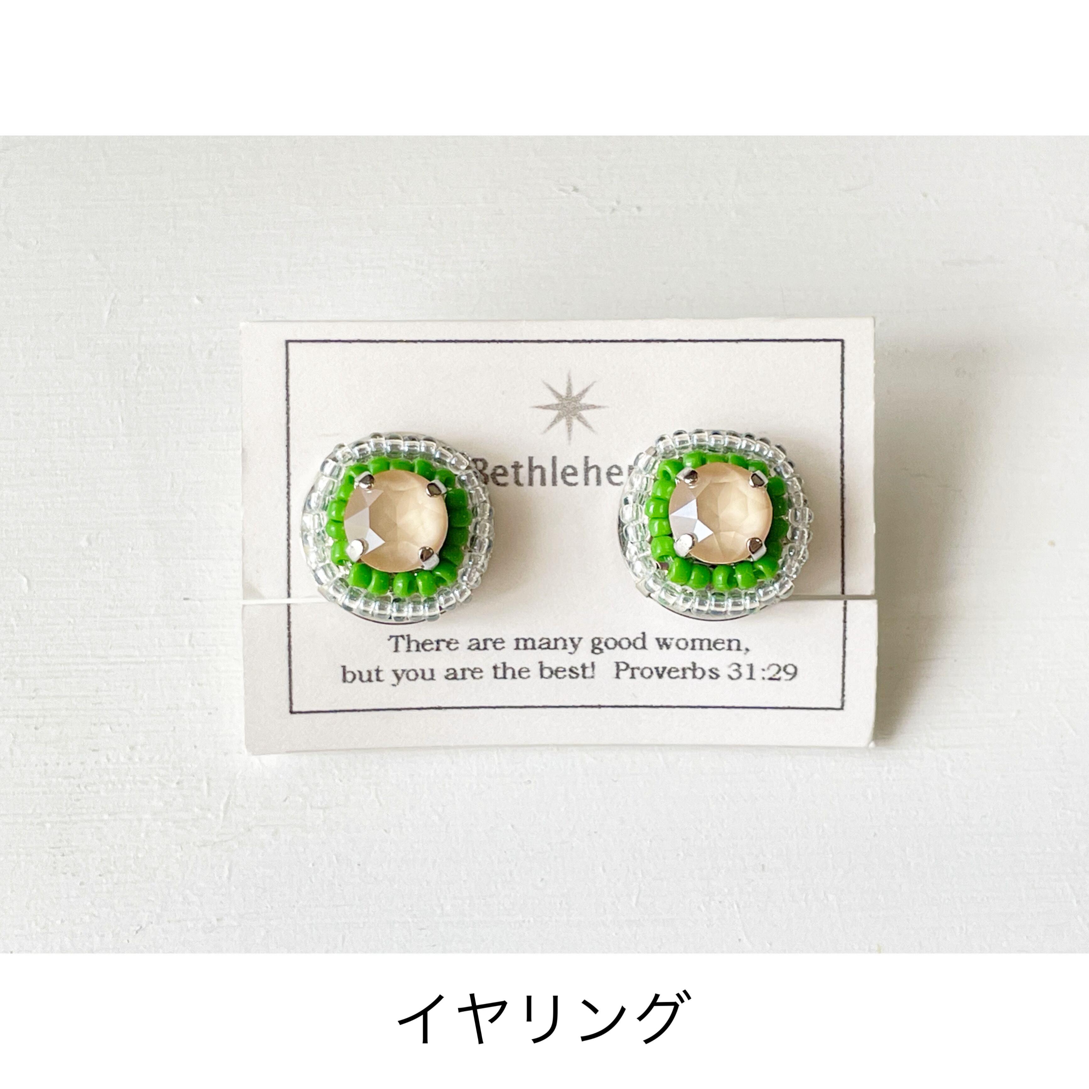 1番外側のクリアビーズのみ、ピアスとイヤリングで種類が違います。