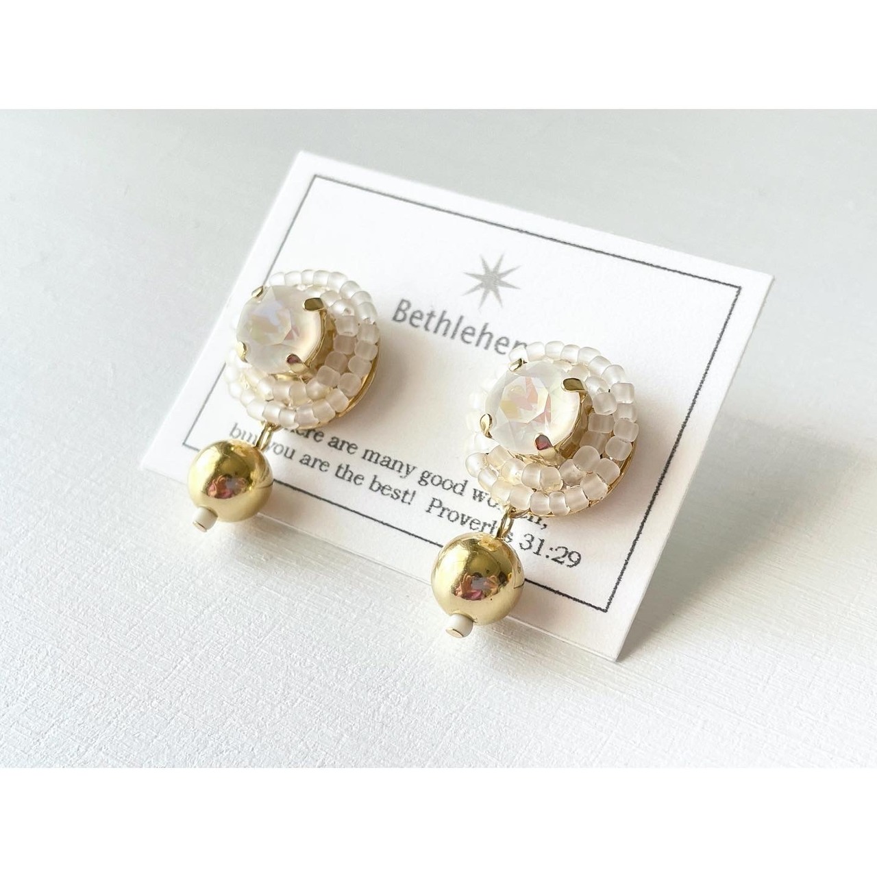 スワロフスキー製のビジューをこつぶなビーズで囲んだコロンとしたピアスです。