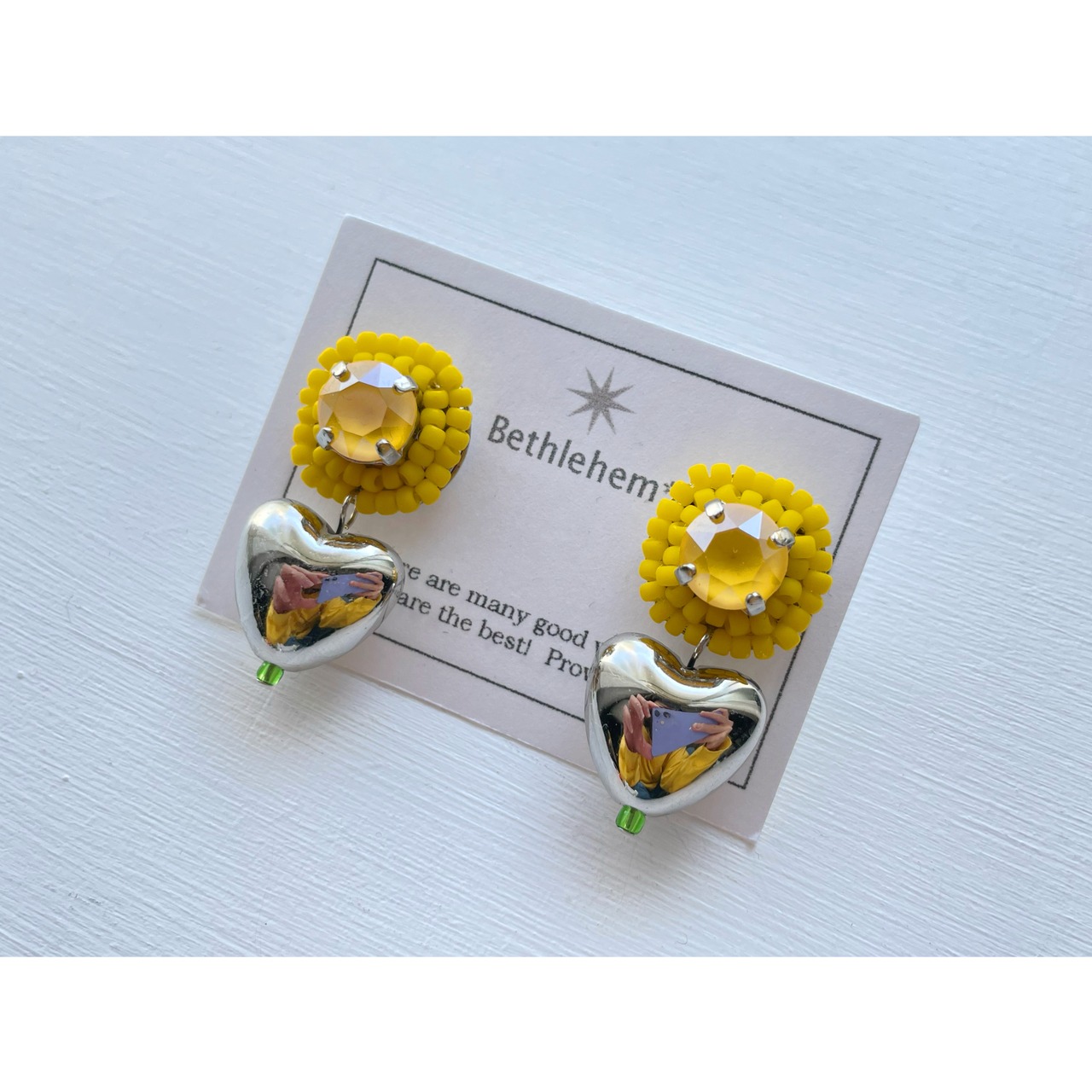 イエローカラーで可愛さと元気さを出しつつ、シルバーのハートでラブリーになりすぎないよう、バランスを取りました。