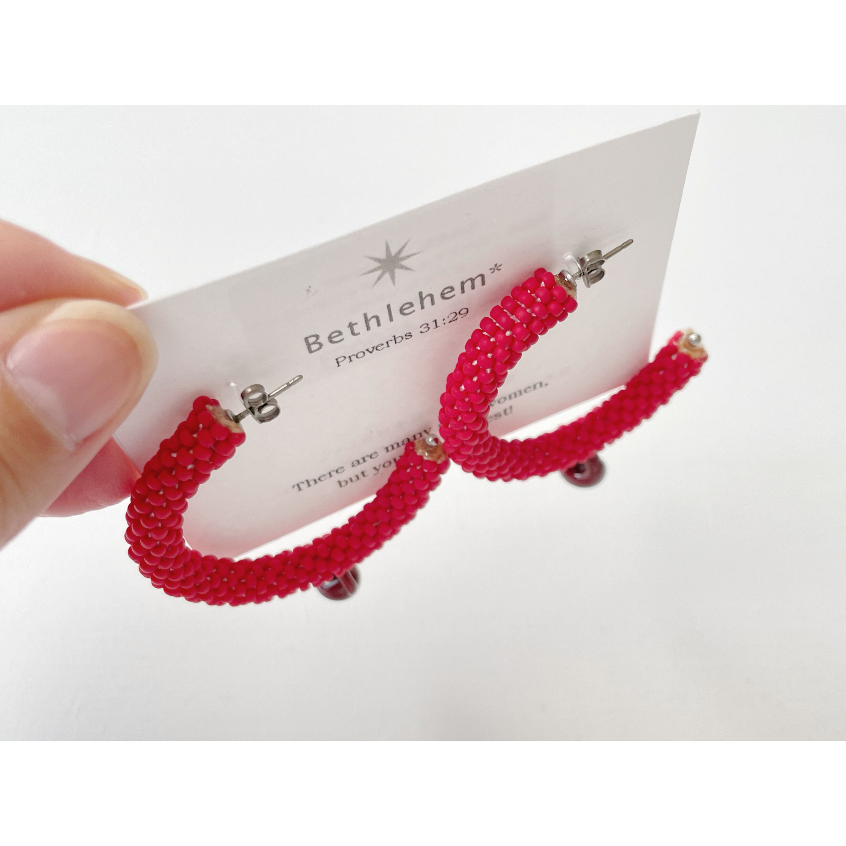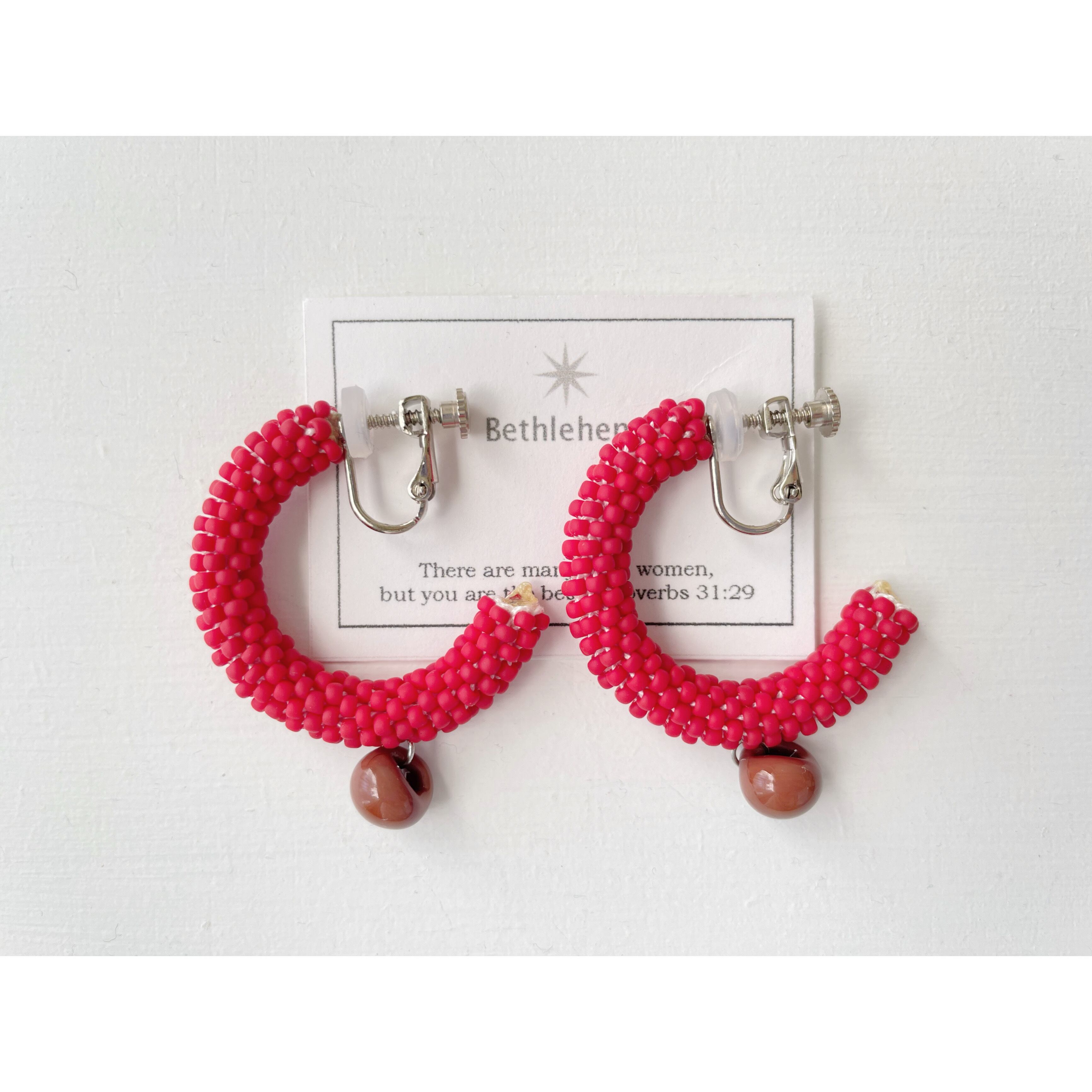 ビーズをひと粒ひと粒丁寧にチューブ状に編んだフープピアスです。