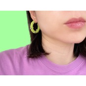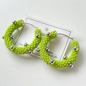 ひと粒ひと粒のビーズを丁寧に編み上げた、立体的なチューブ状フープピアスです。