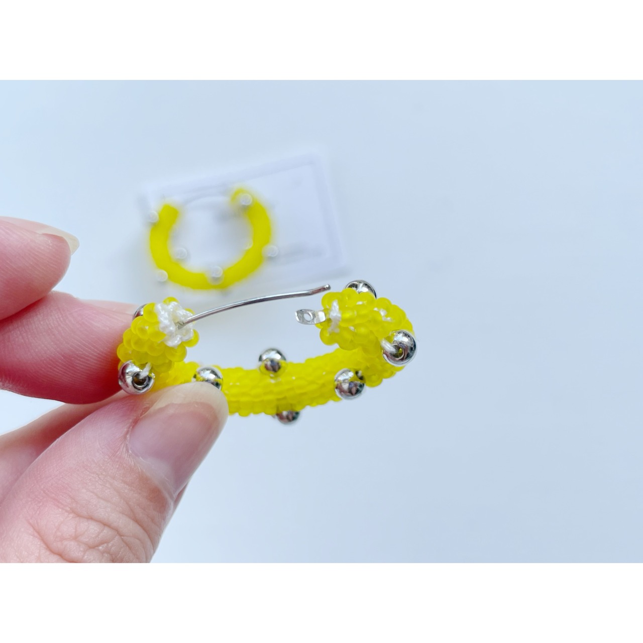ビーズをひと粒ひと粒丁寧にチューブ状に編んだフープピアスです。