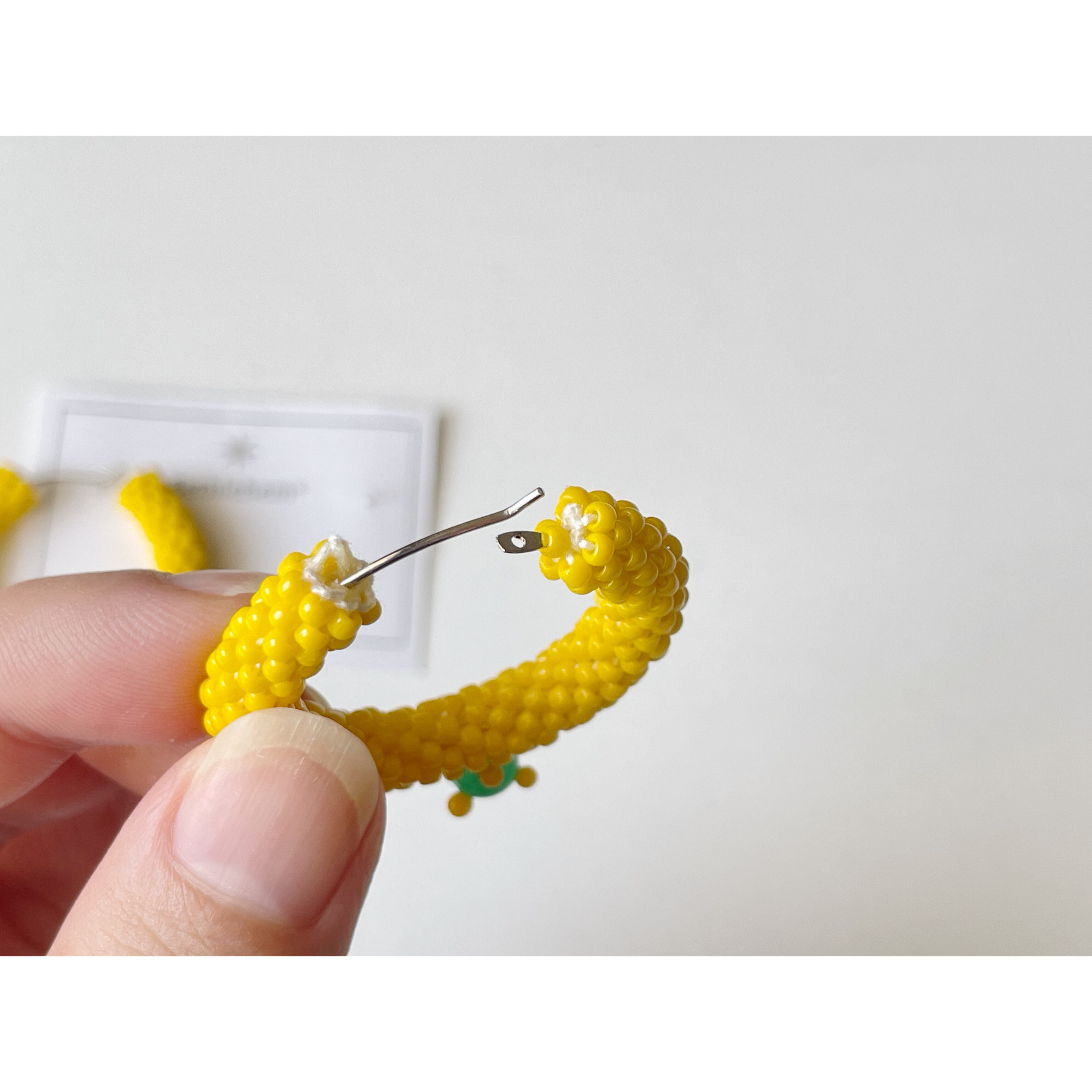 ビーズを一粒一粒丁寧に編み上げ、チューブ状に仕立てたフープピアスです。