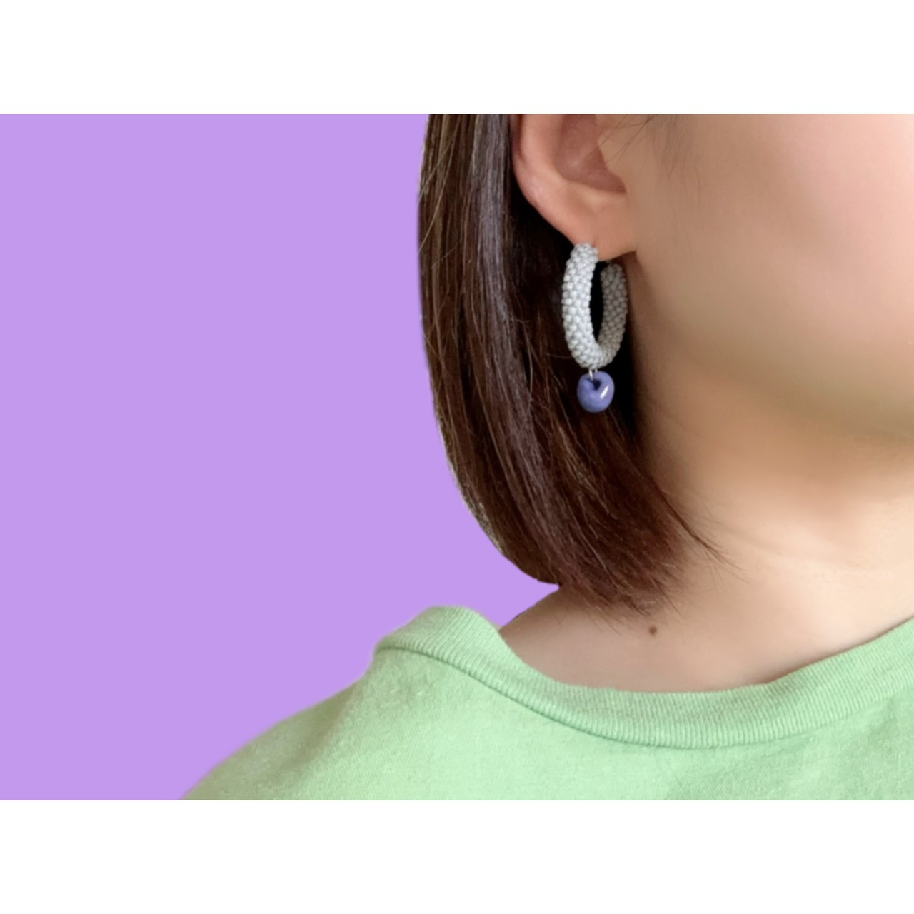 ビーズを一粒一粒丁寧に編み上げ、チューブ状に仕立てたフープピアスです。