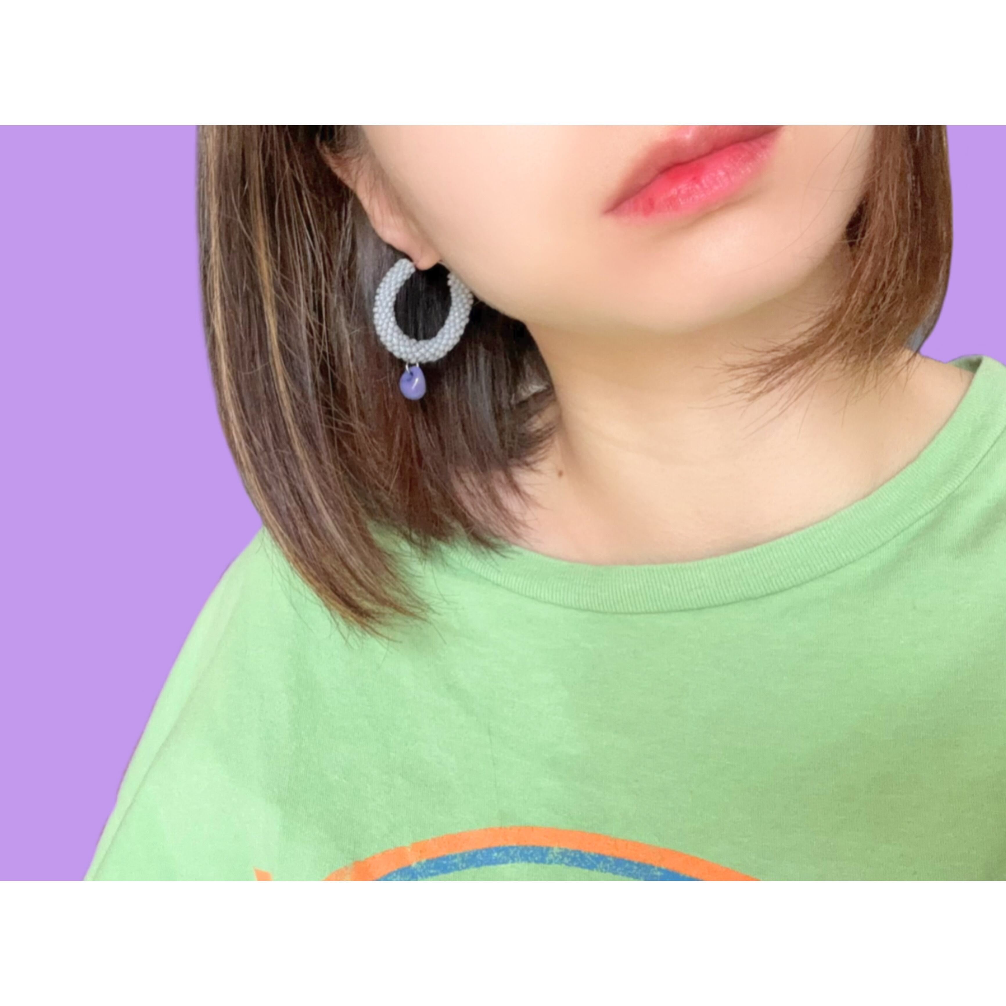 下に付いているのは「ティアドロップビーズ」。ひとつひとつ手作業で作られたガラスビーズで、個体ごとに表情が異なり、オンリーワンのニュアンスを楽しめます♩