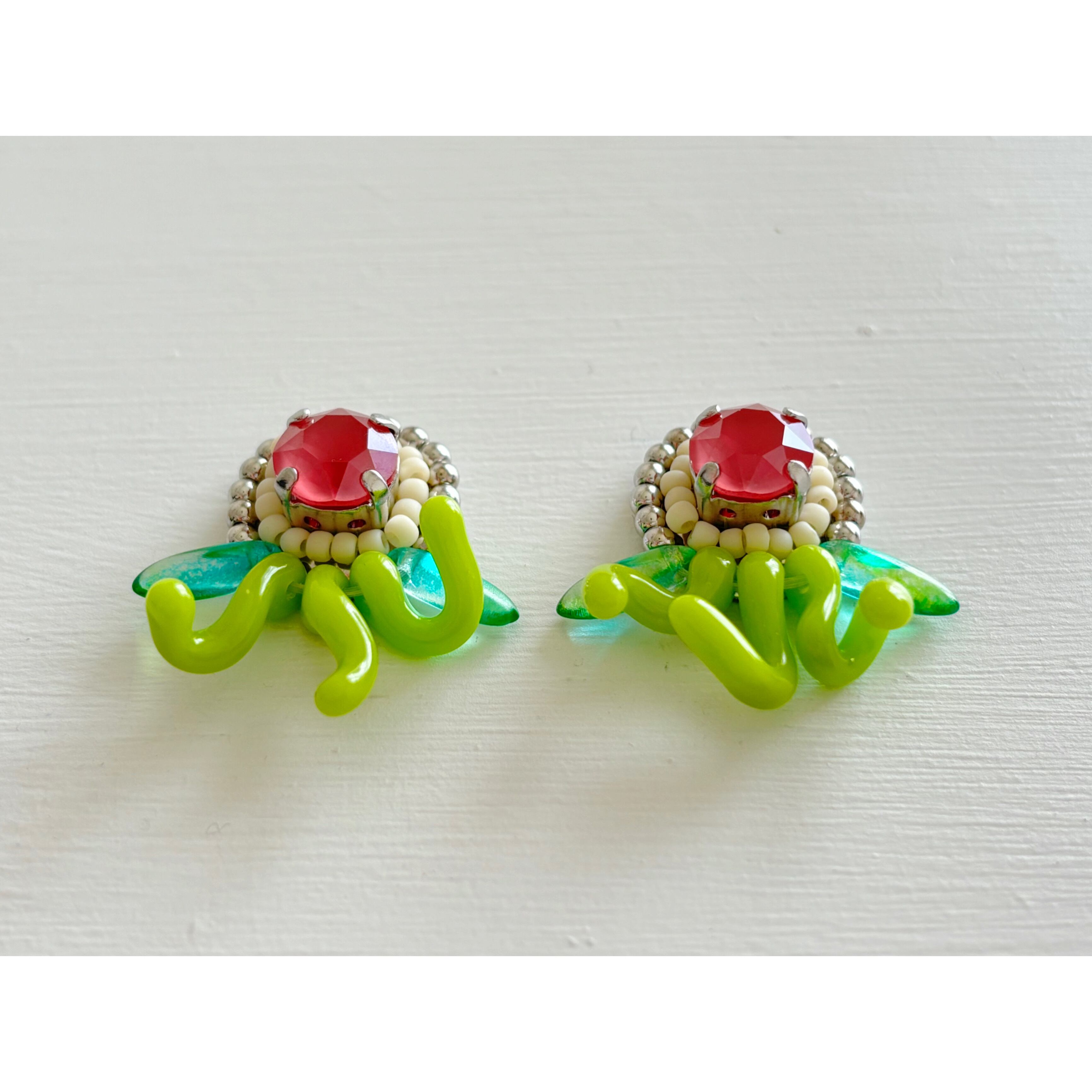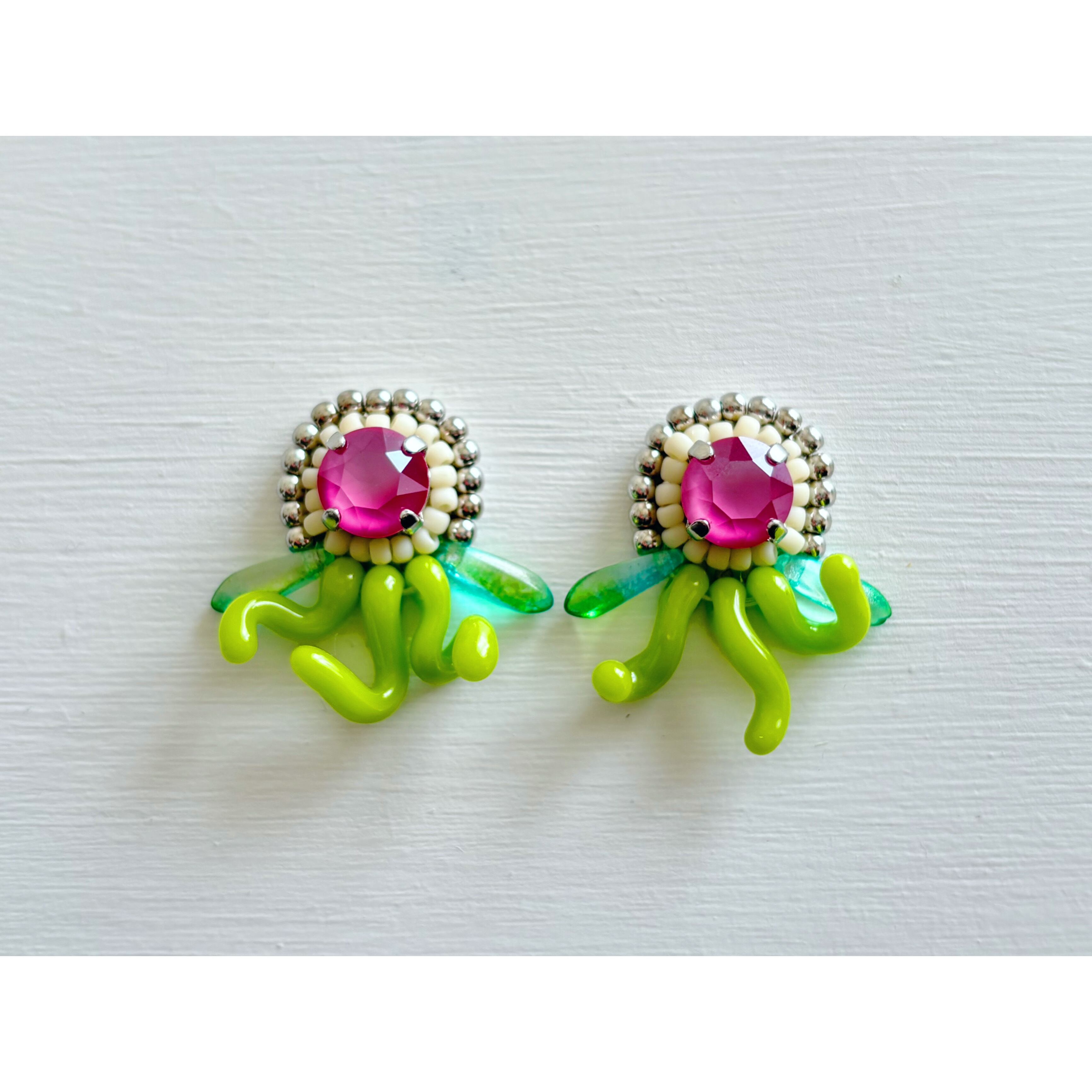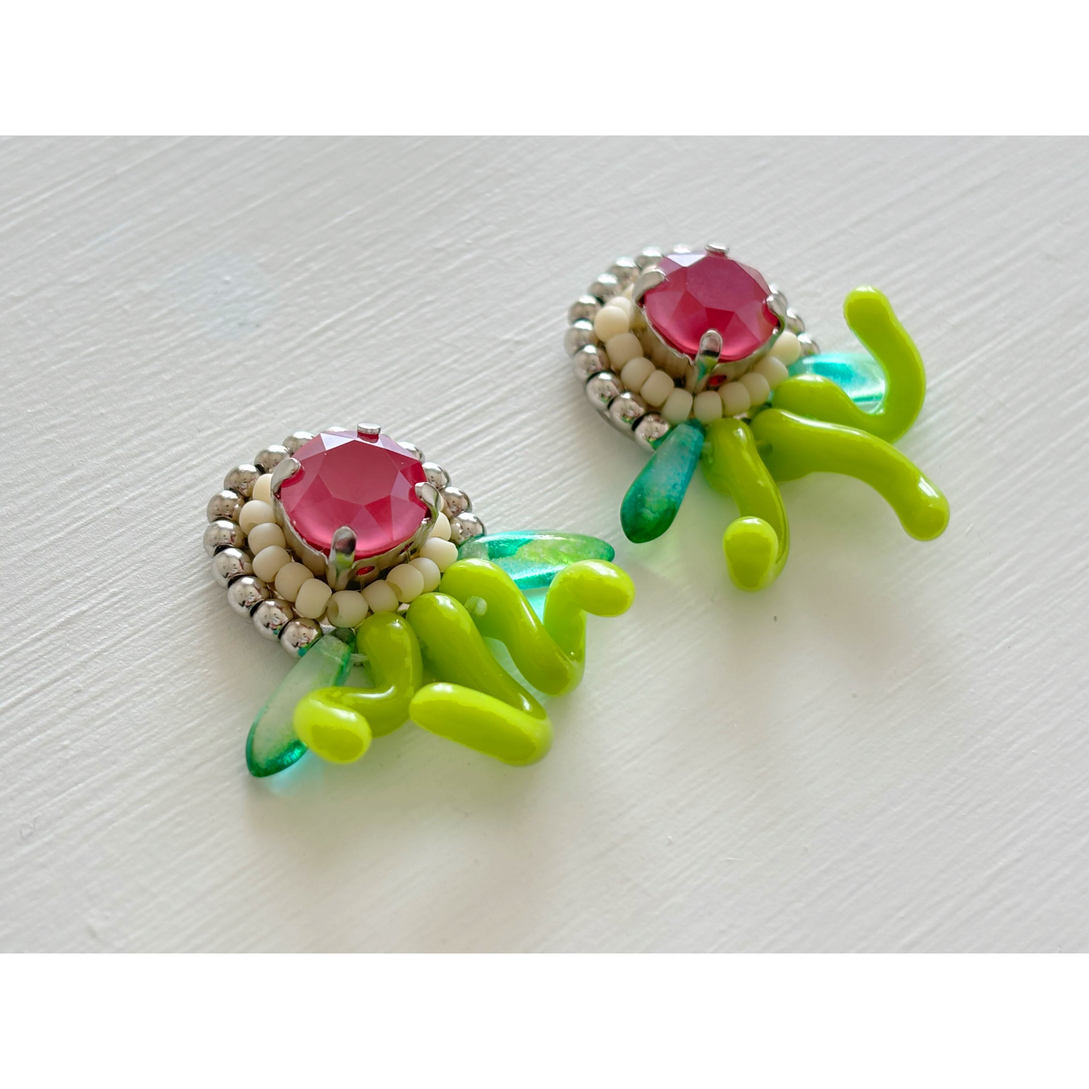 ガラスビーズ作家さんの手作りによる、貴重なうにょうにょビーズを使用したイヤリングです。