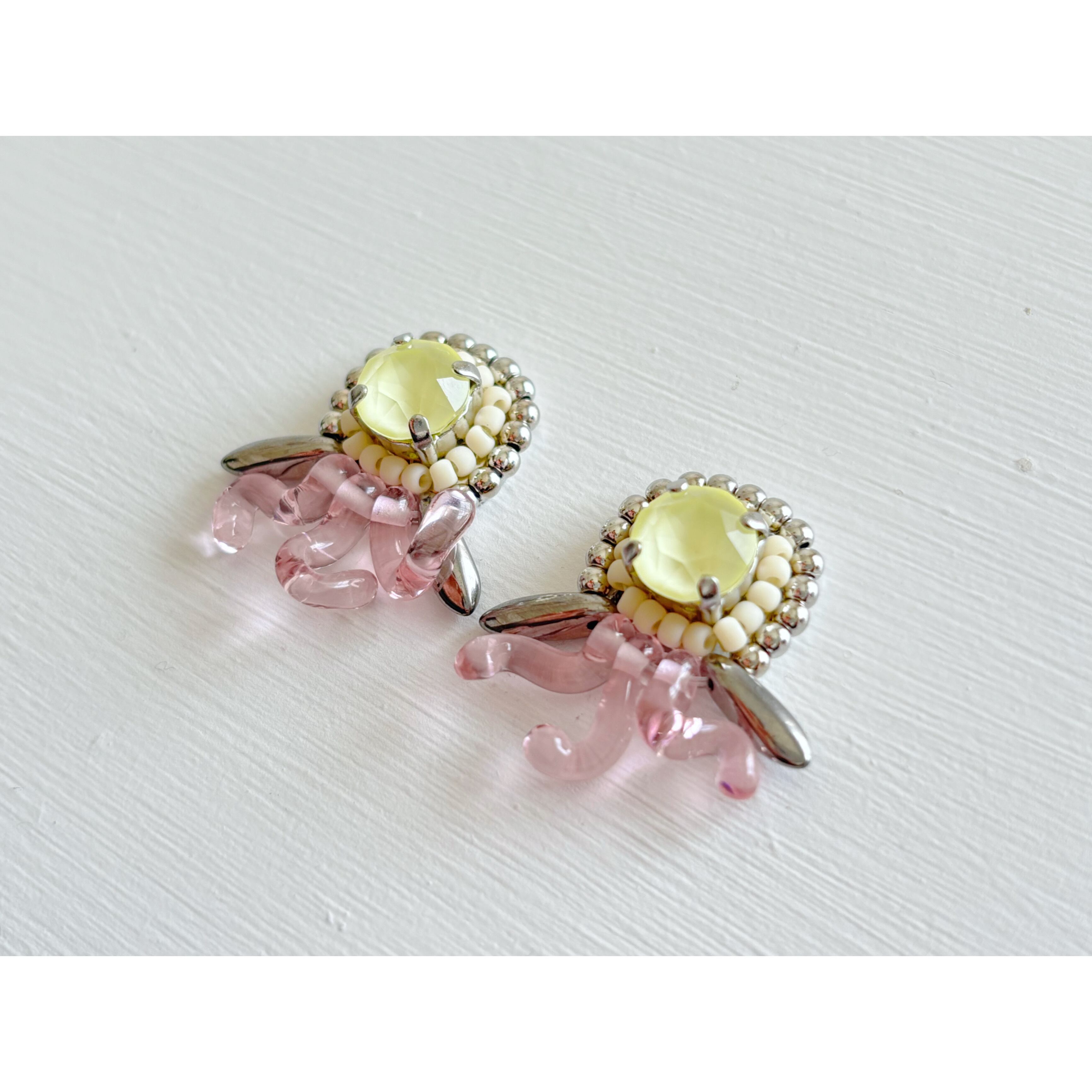 ガラスビーズ作家さんの手作りによる、貴重なうにょうにょビーズを使用したイヤリングです。