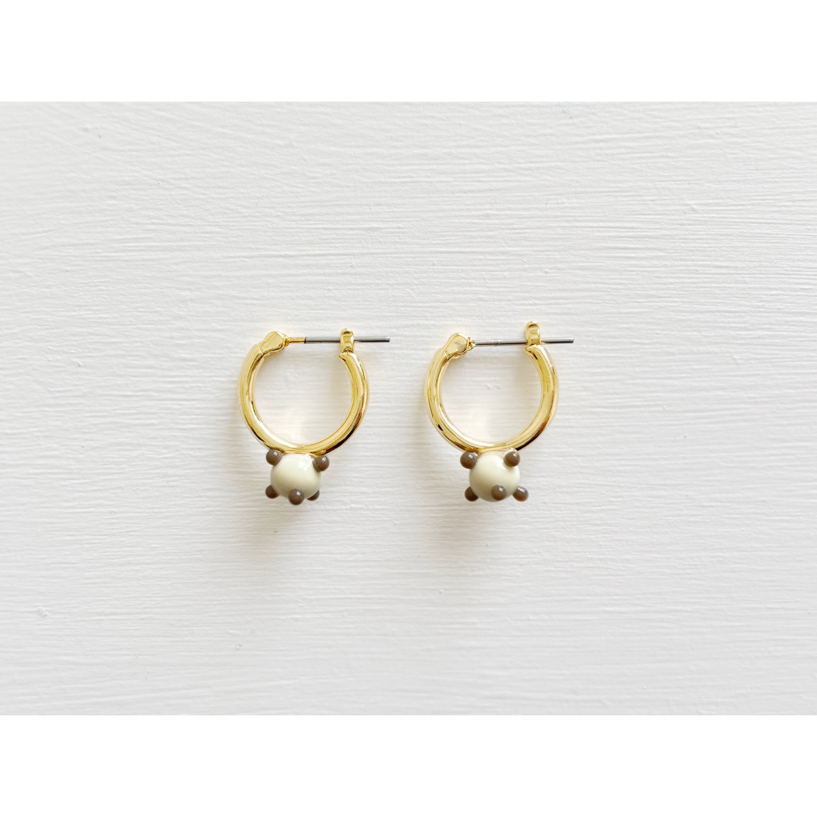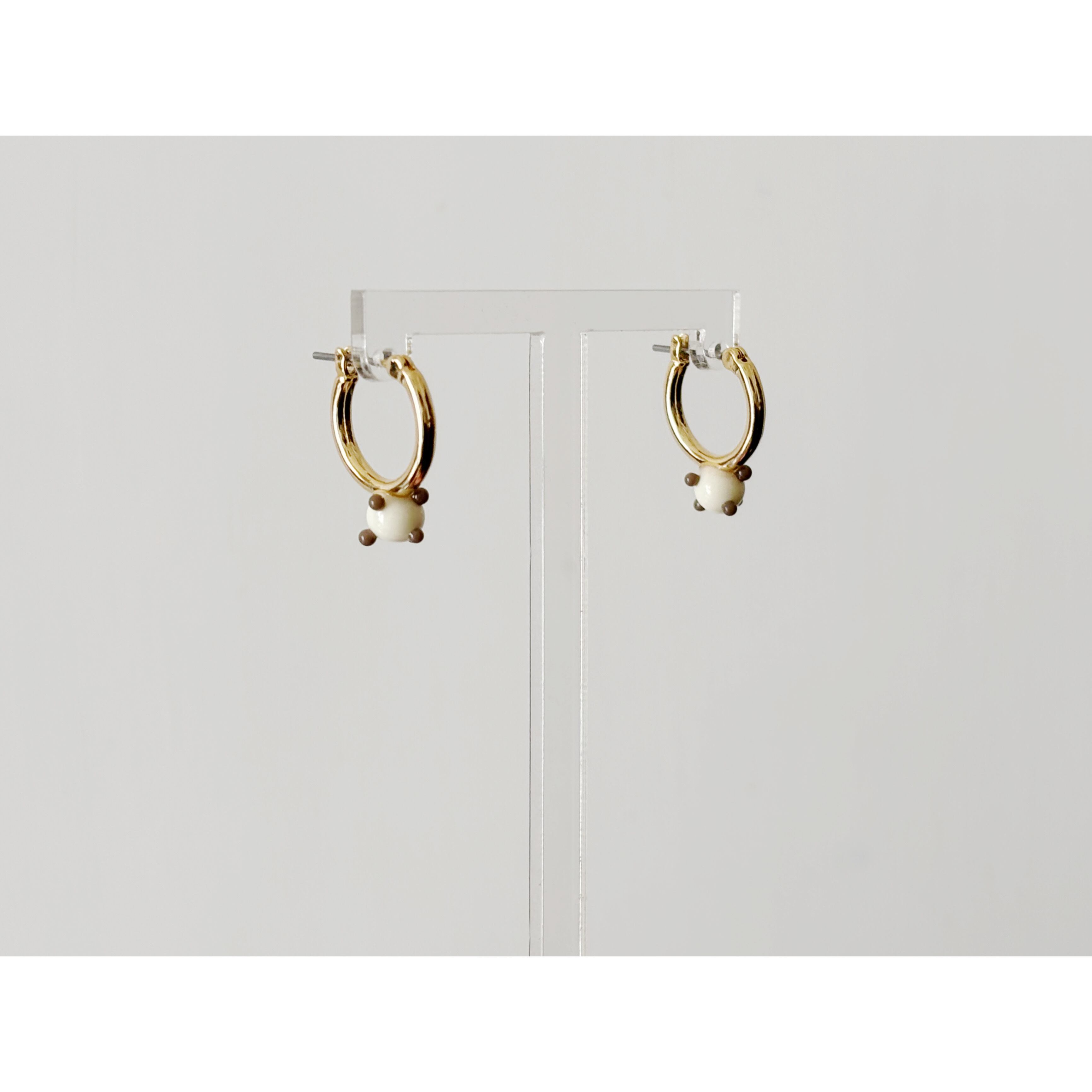 シンプルなゴールドフープに、小さな手作りガラスビーズをあしらったピアス。