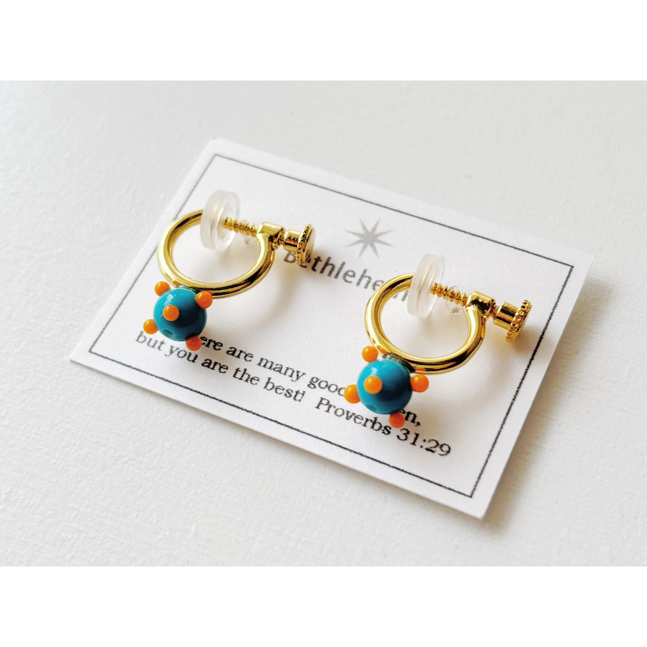 シンプルなシルバーフープに、小さな手作りガラスビーズをあしらったイヤリング。